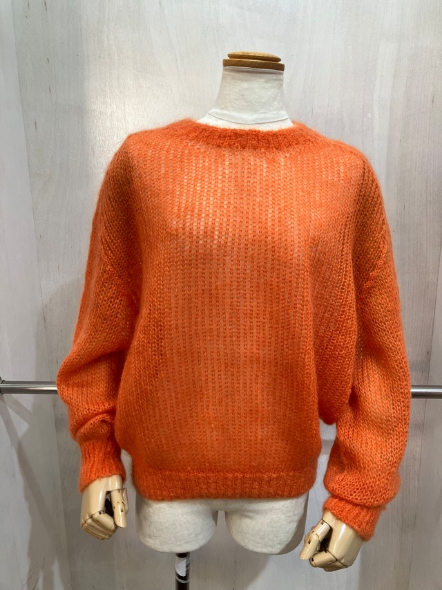 モヘア混のニットだが、「ホールガーメント」と呼ばれるまったく新しいタイプのニットウェア。繋ぎ目がない一着丸ごと編んだ無縫製ニットです。 日本製 色 オレンジ サイズ 38 素材 モヘア 55% ナイロン 30% ウール 15%