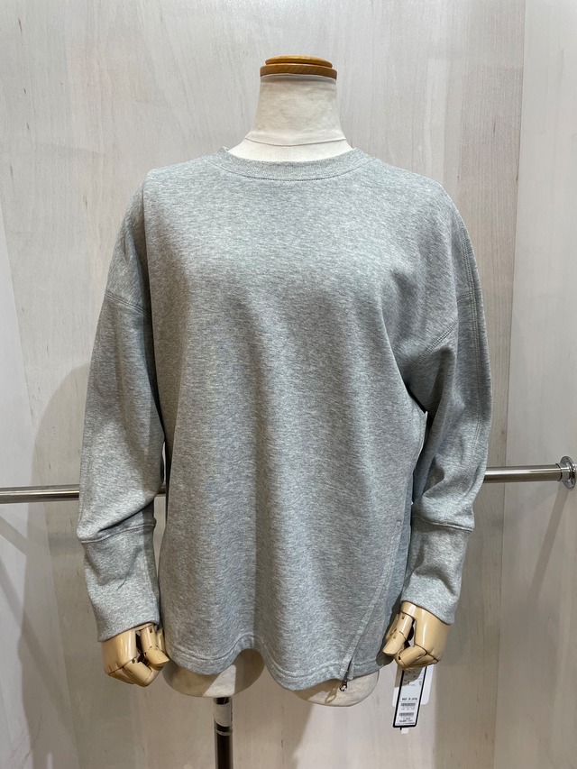 薄手のスウェット生地の丈短めの若干ゆったりめのトップ。 フェイクのジップ付きポケット有り。後方のジップと繋げれば、ブラックのフェイクポケットに変わります。 made in japan 色 グレー サイズ 38 素材 綿 100% 別布 綿 100%