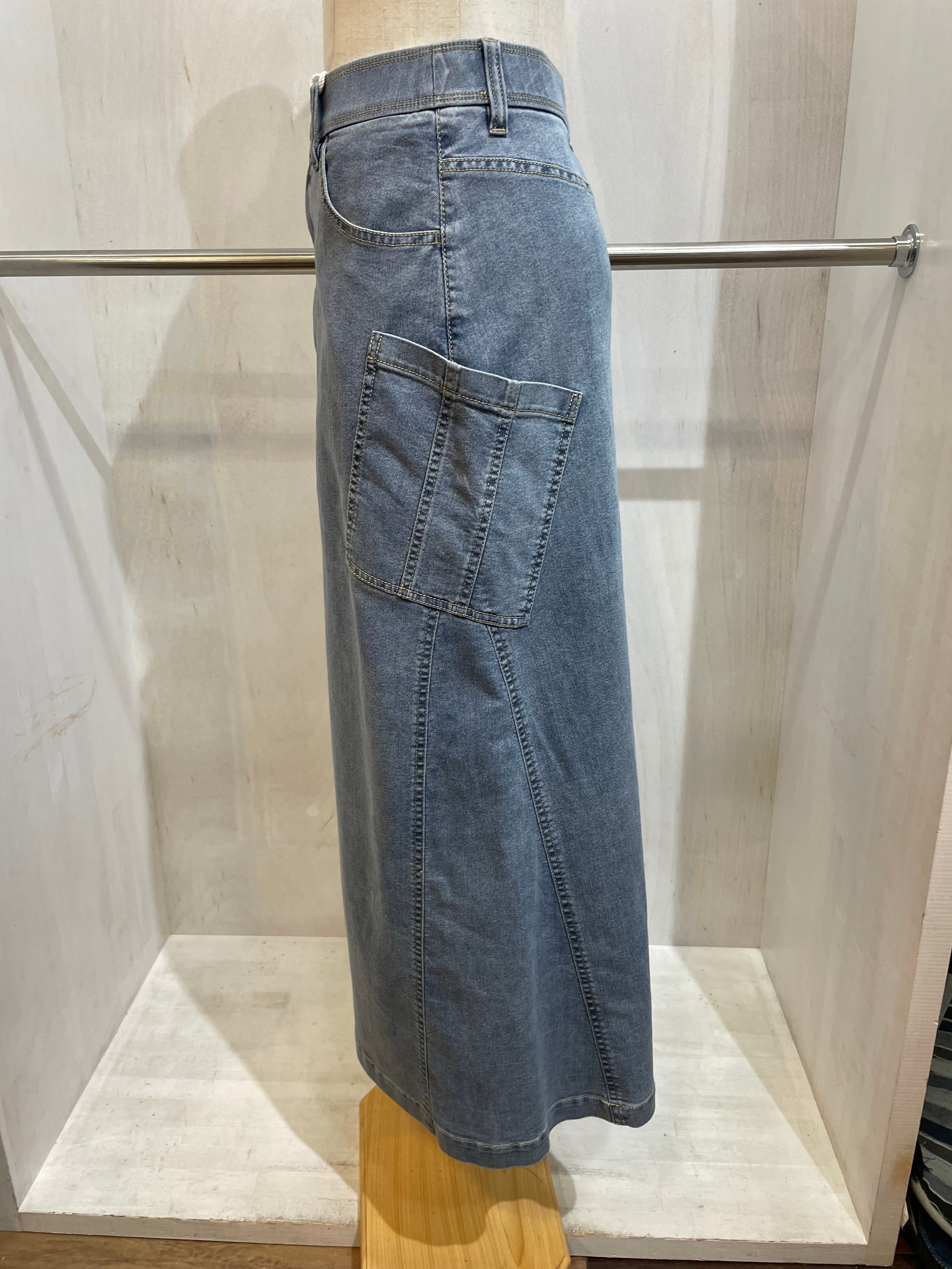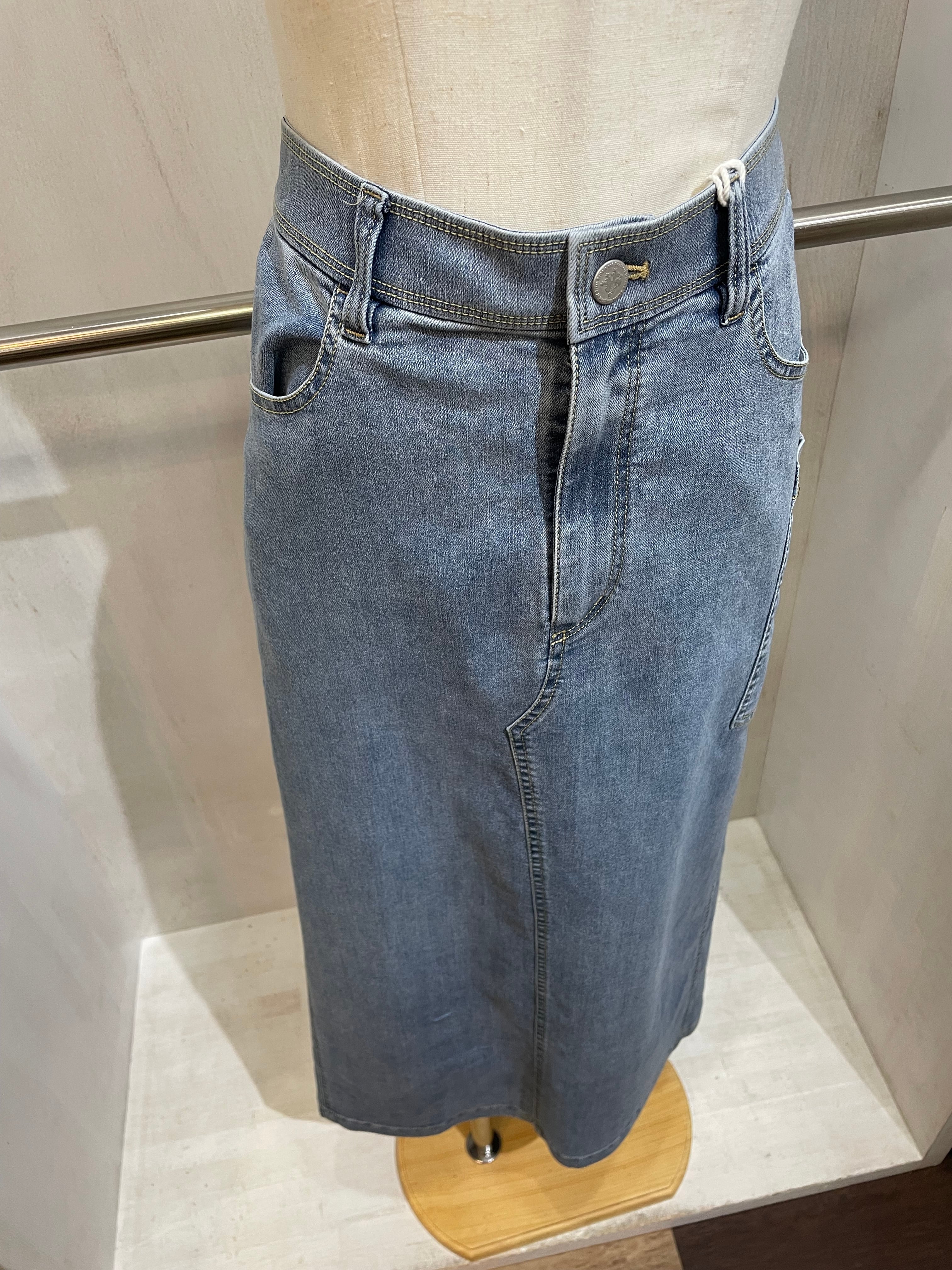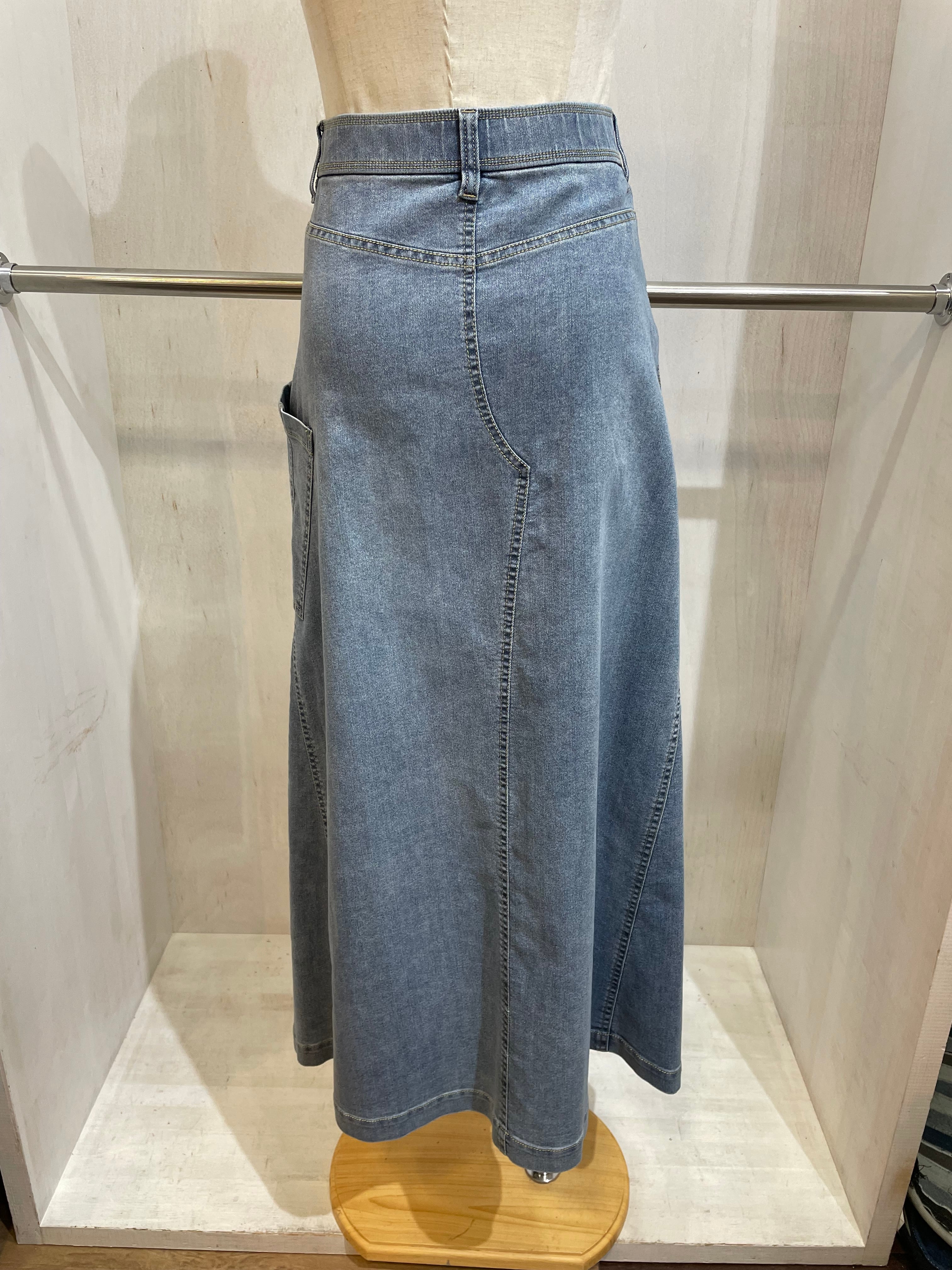 女性らしくもカジュアルなラインのデニムスカート。