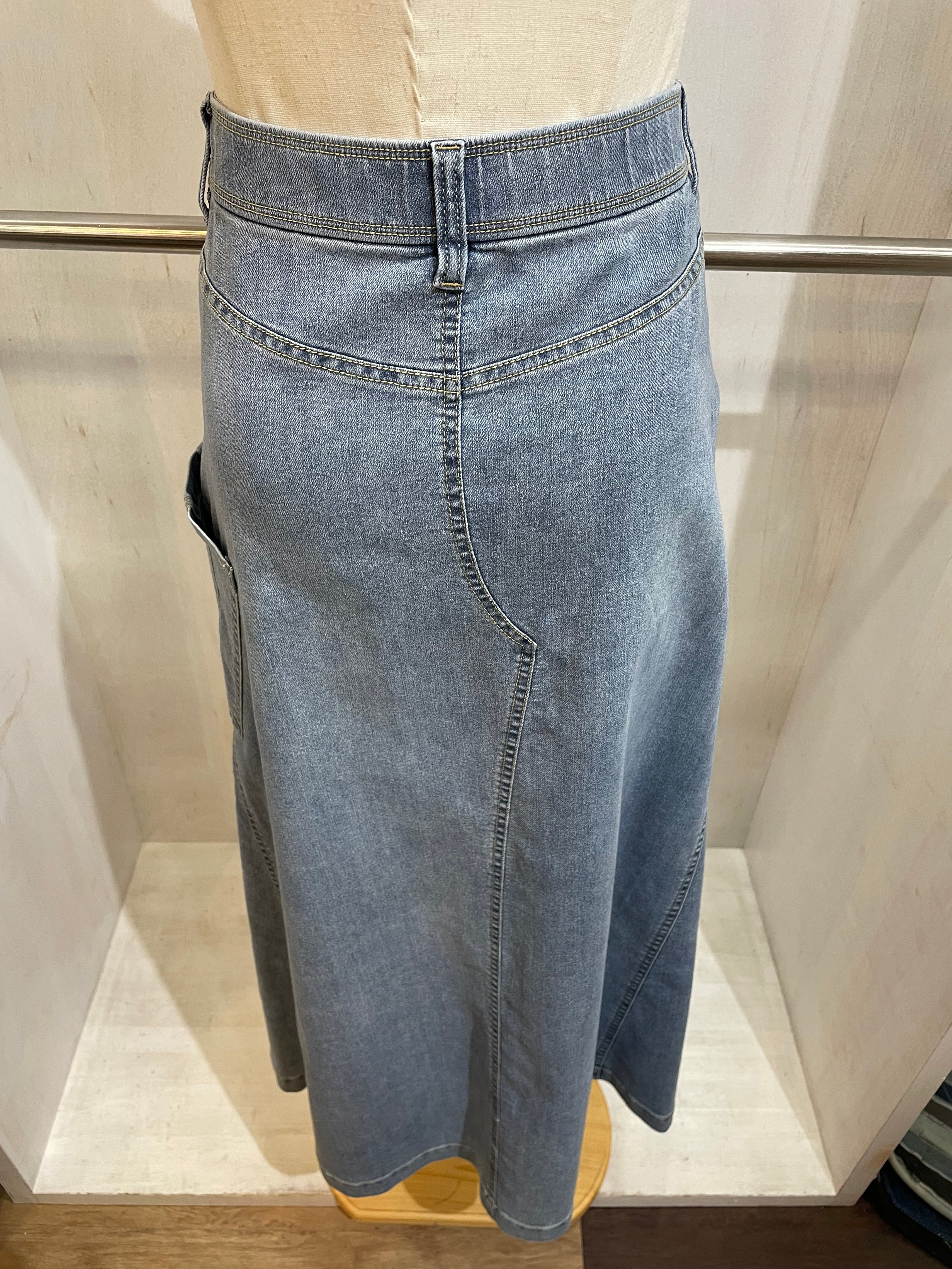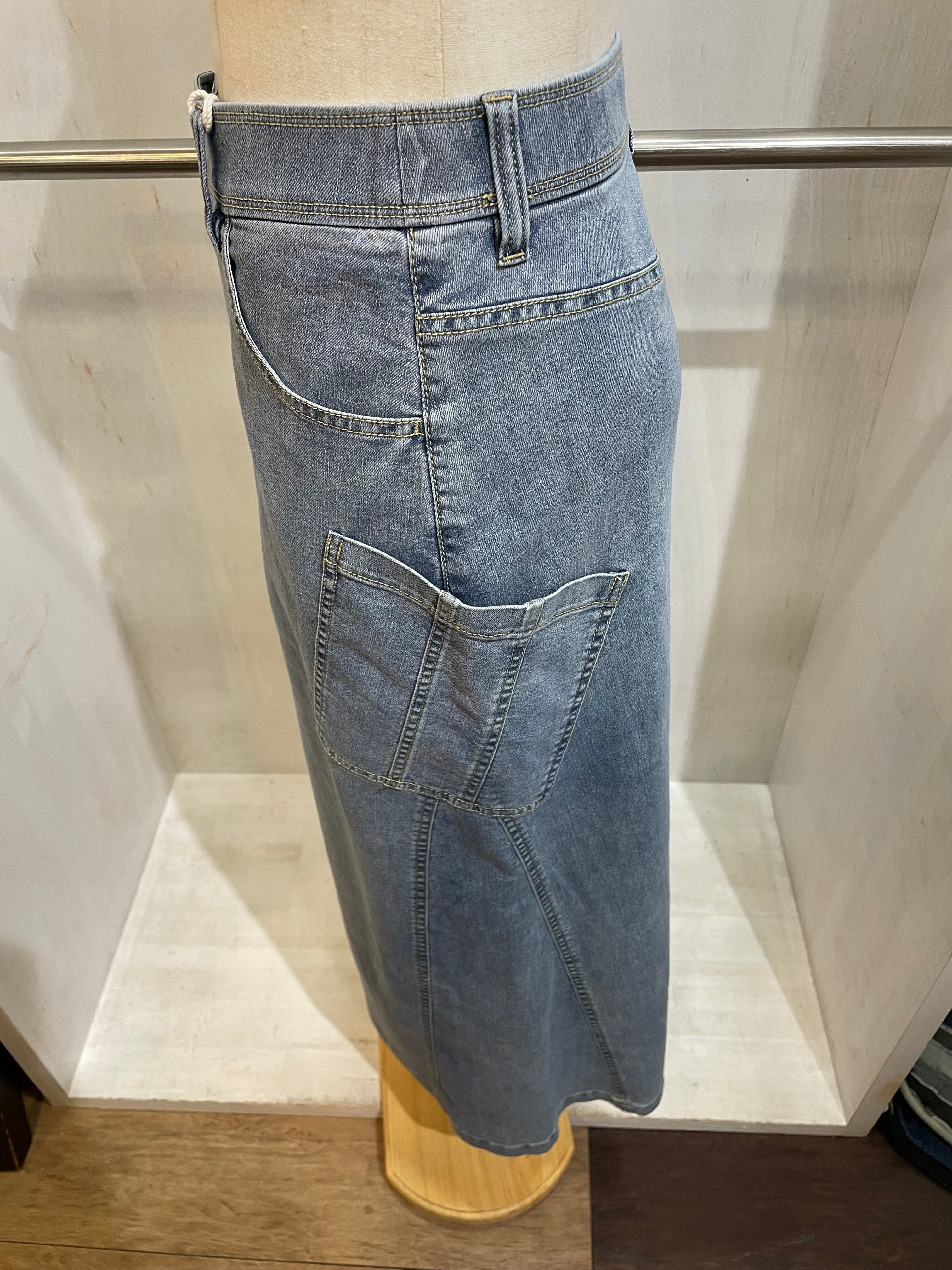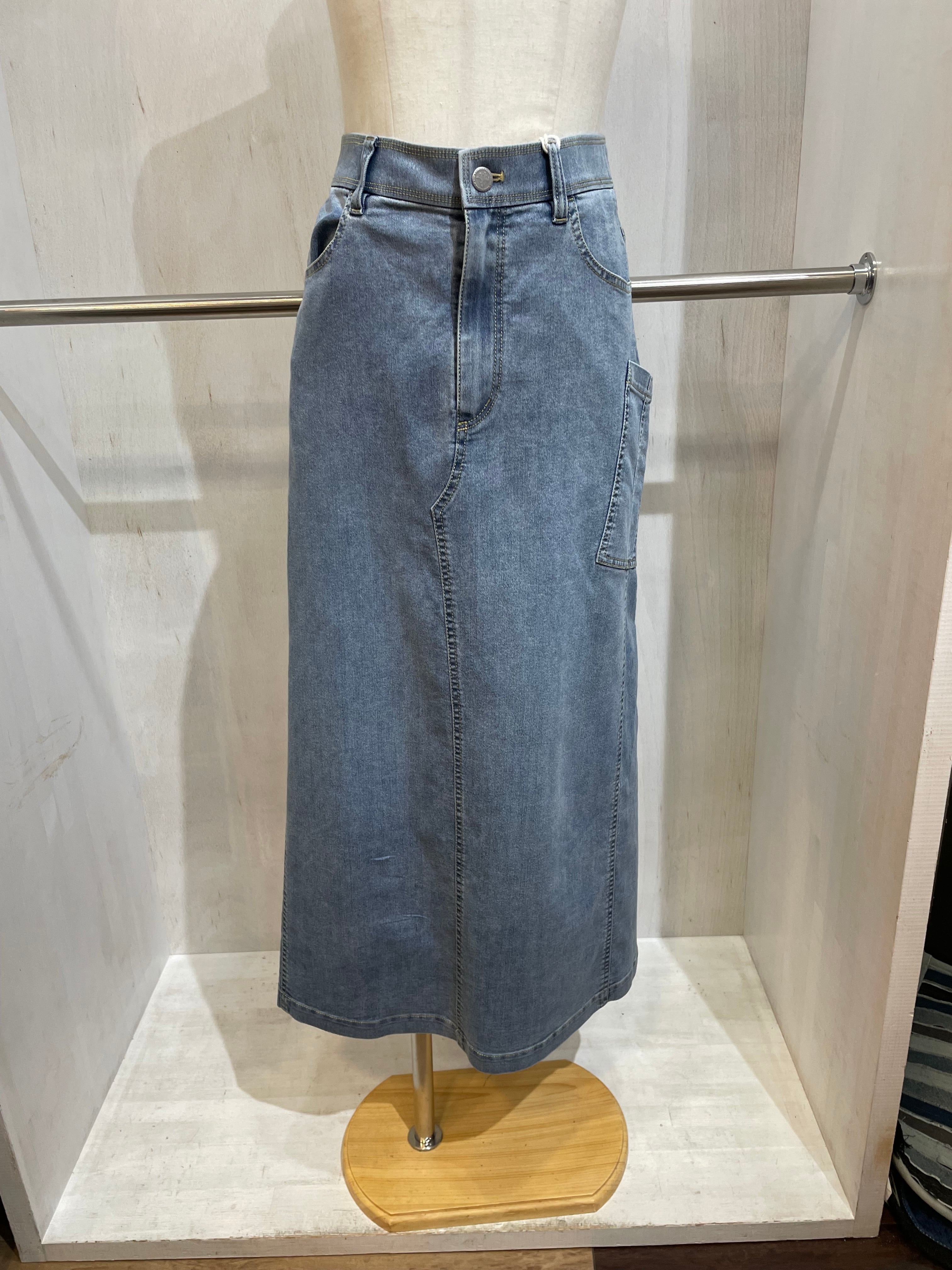 女性らしくもカジュアルなラインのデニムスカート。