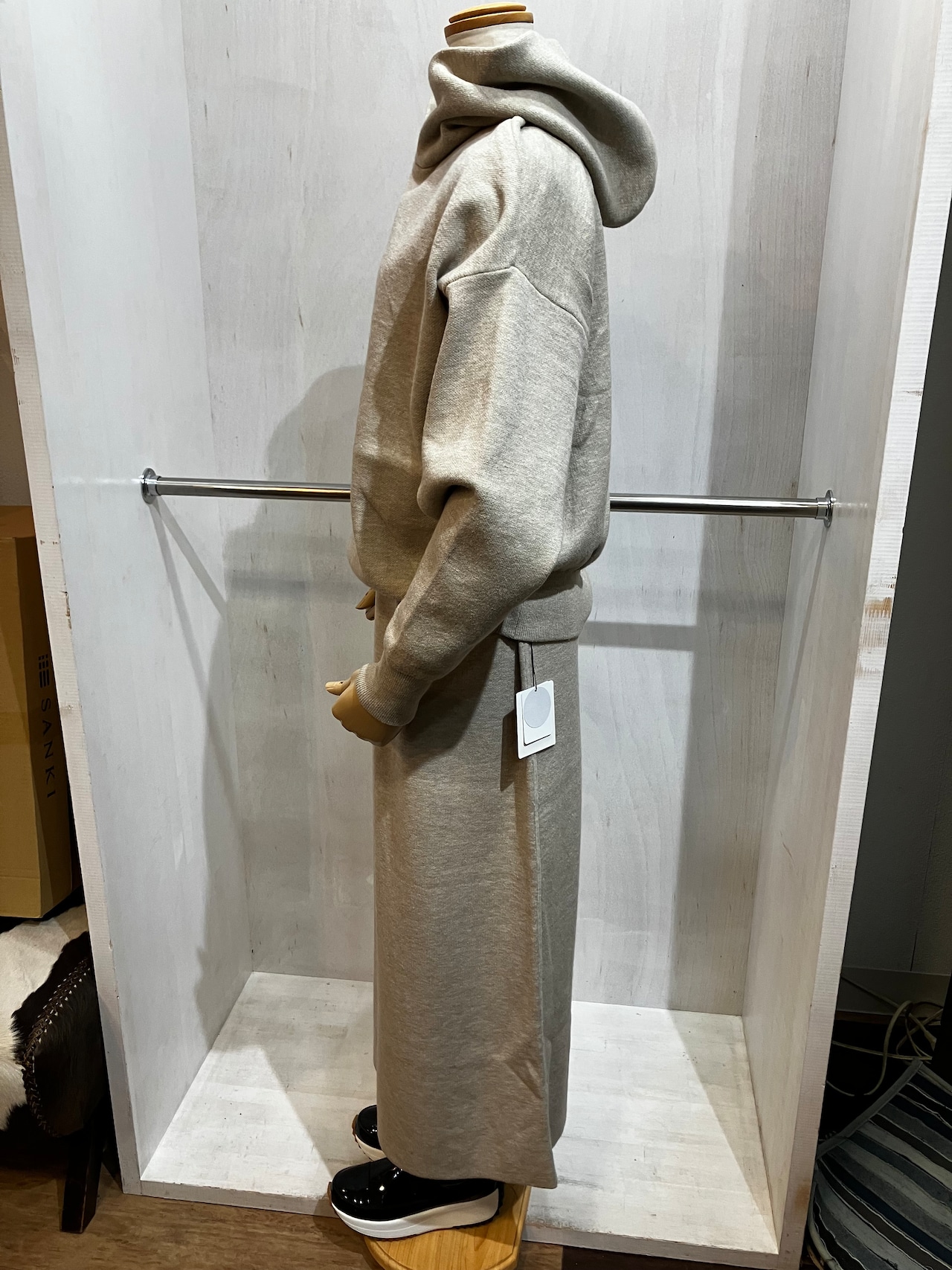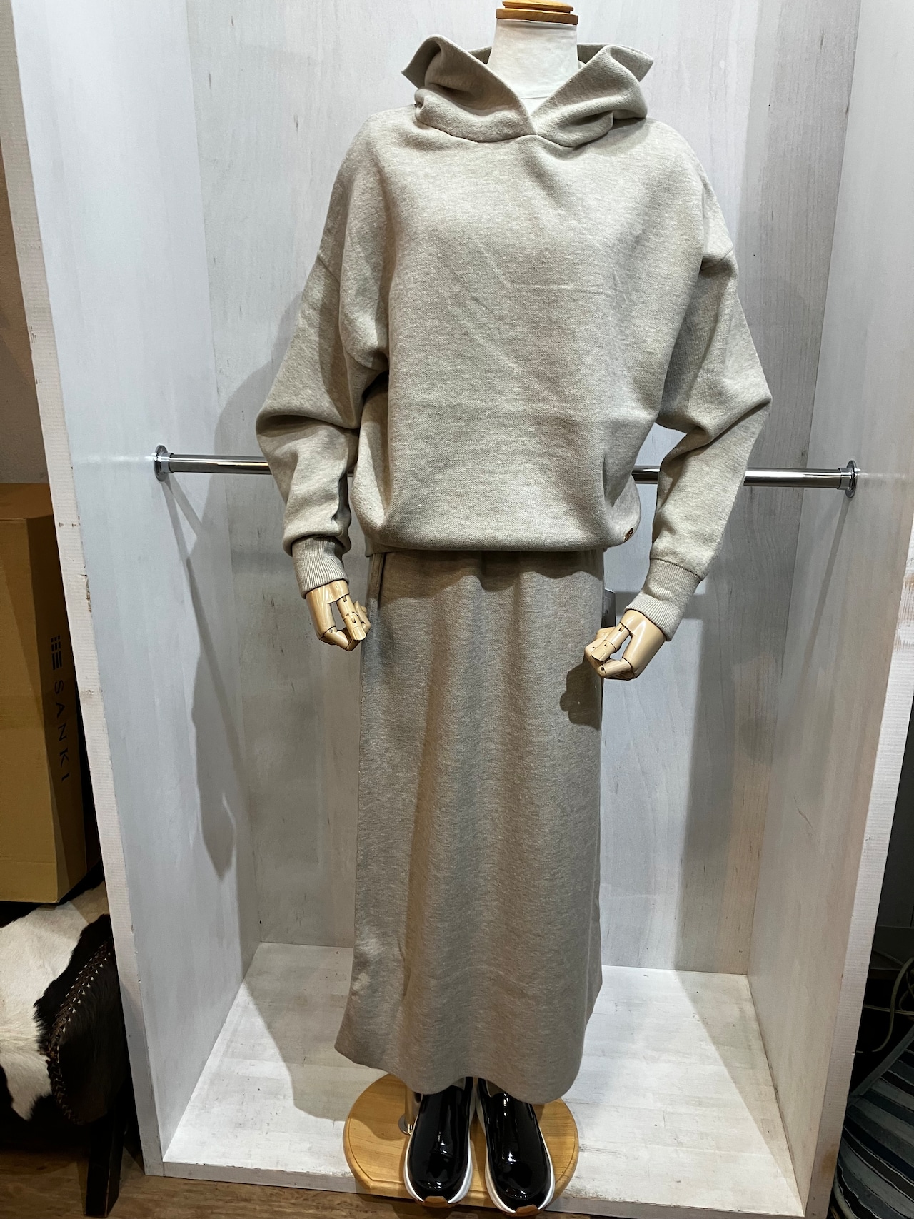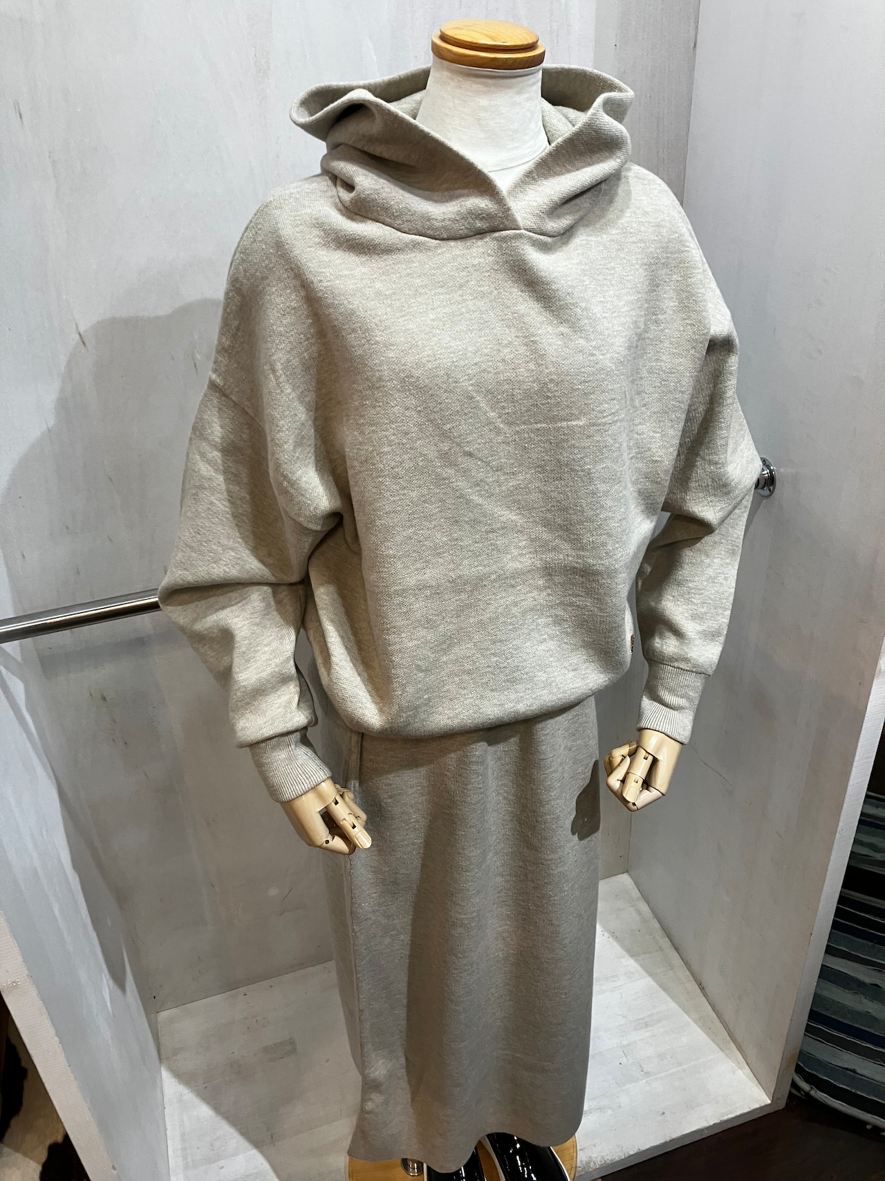 カットニット生地でスウェットの様な着心地のパーカー&スカートのセットアップ