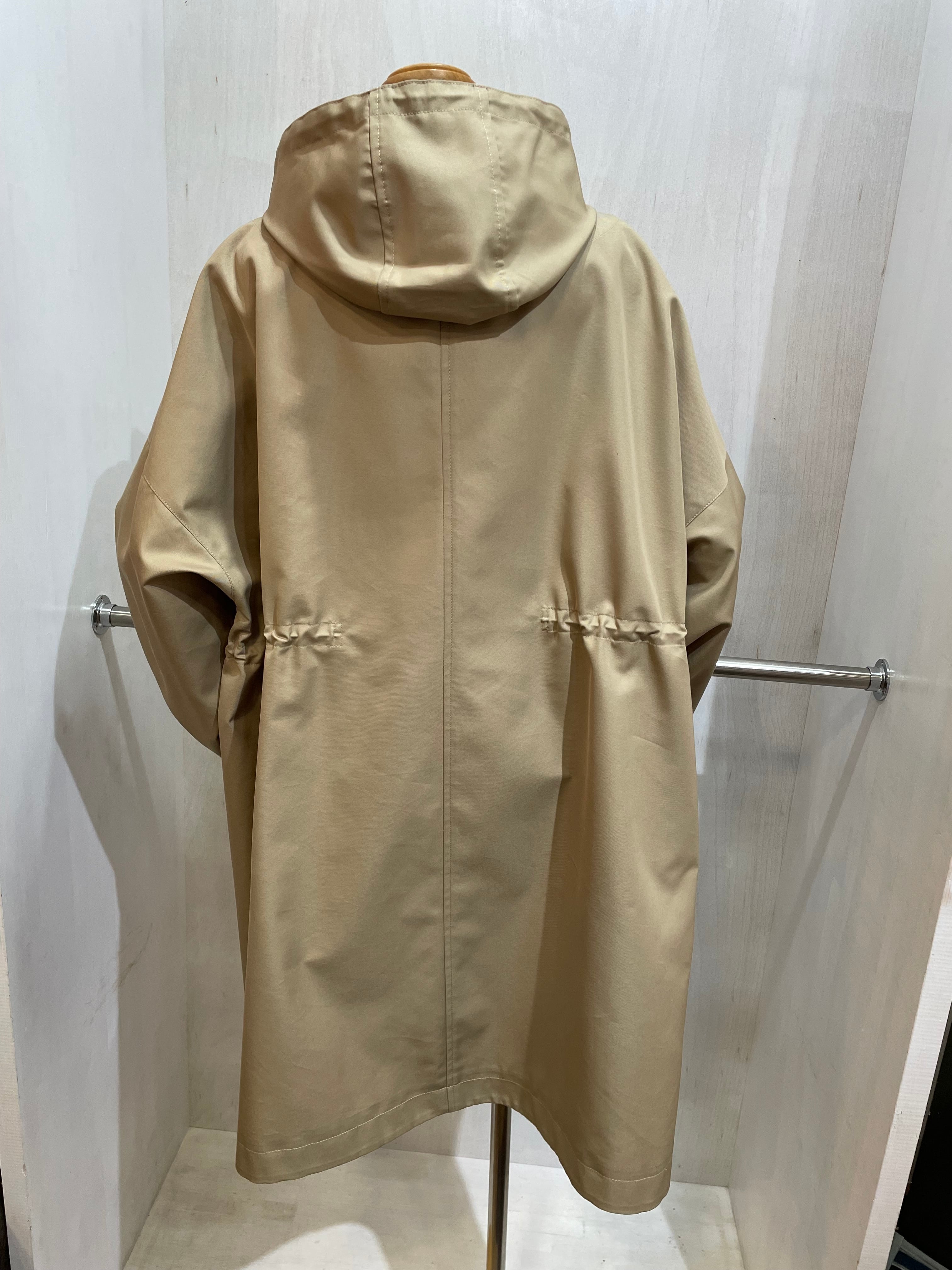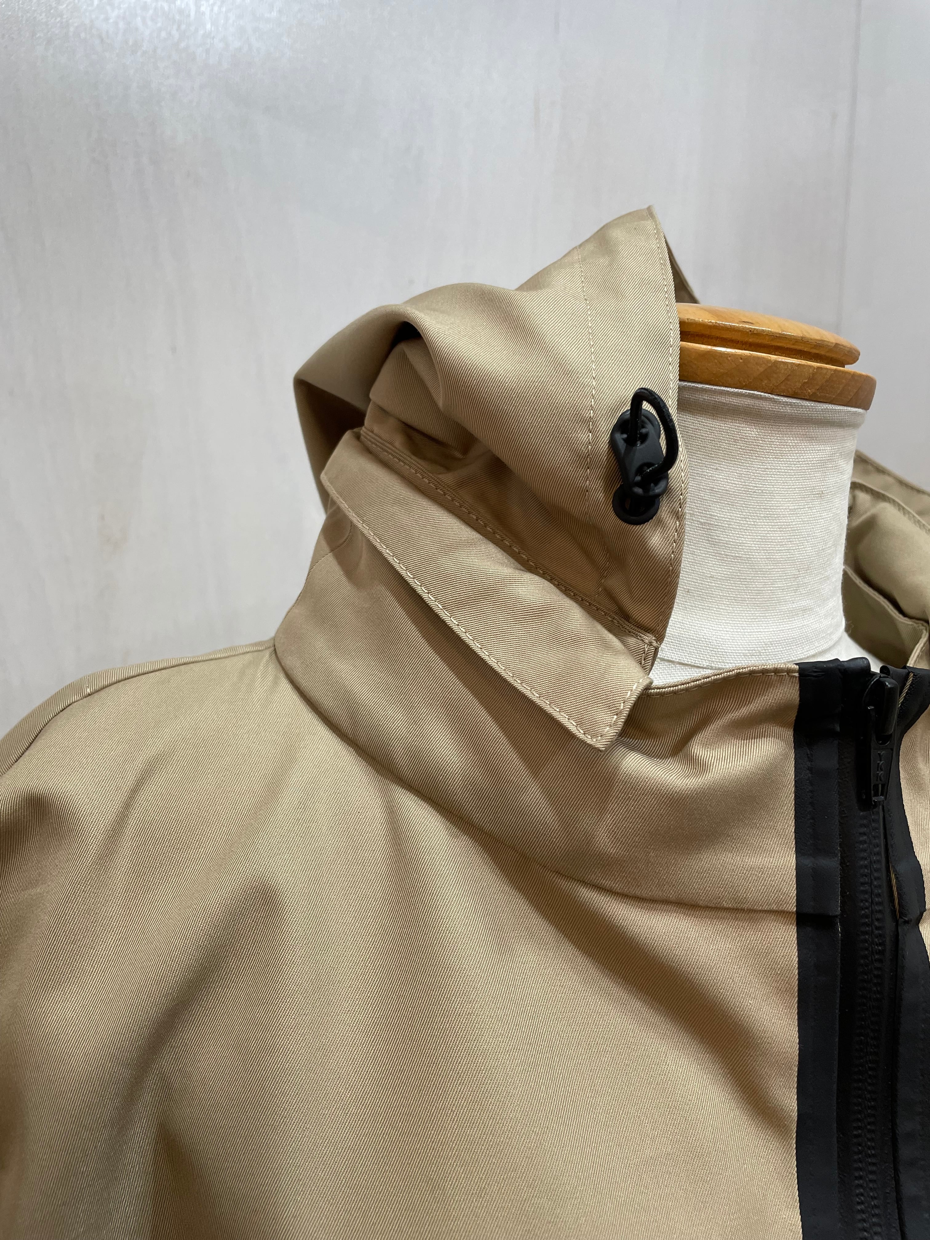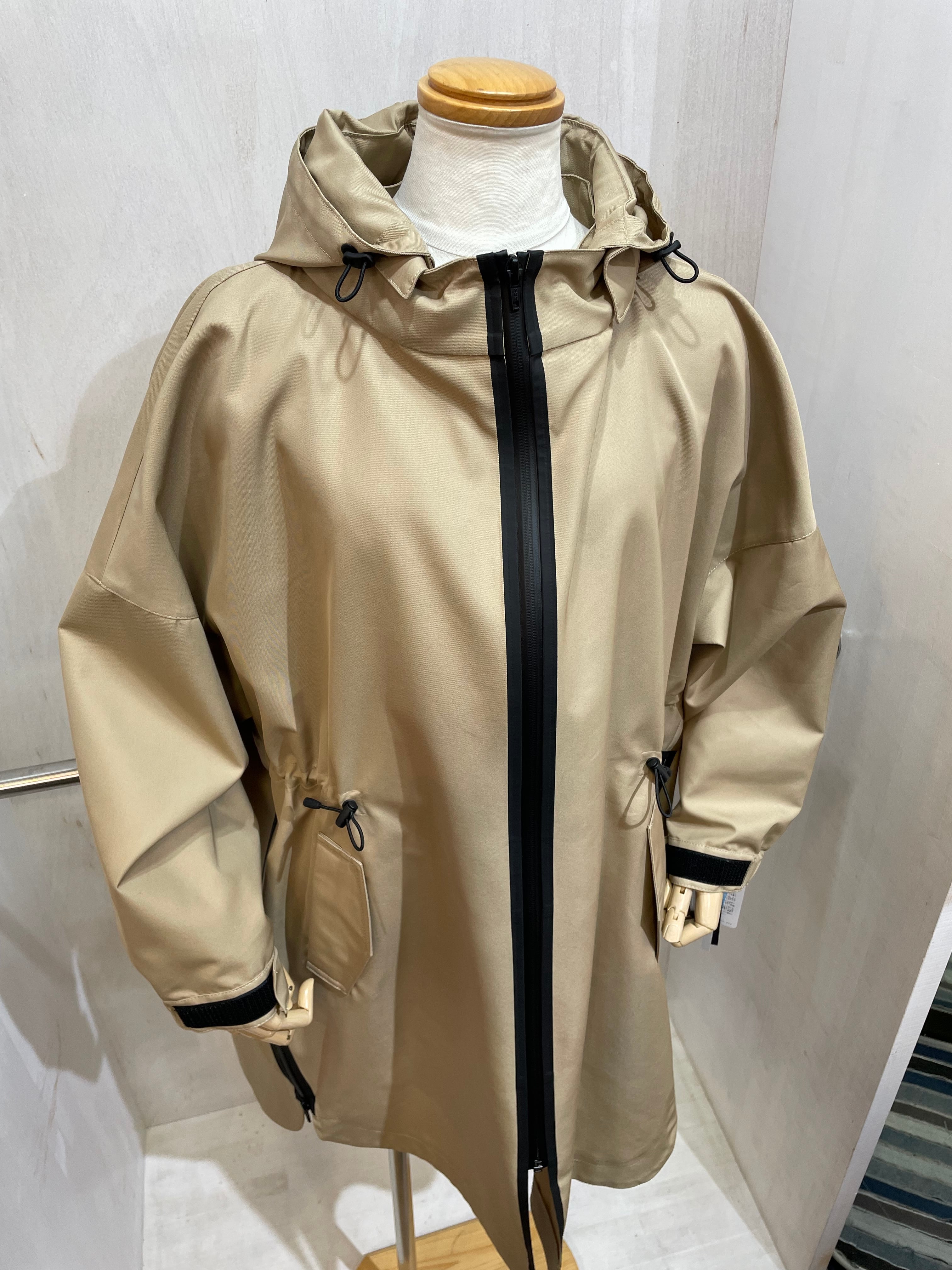 腰のラインにドローコード、サイドに斜めにジップスリット、パーカーの取り外しなどがえり、いろんなアレンジで着れる、万能コート。