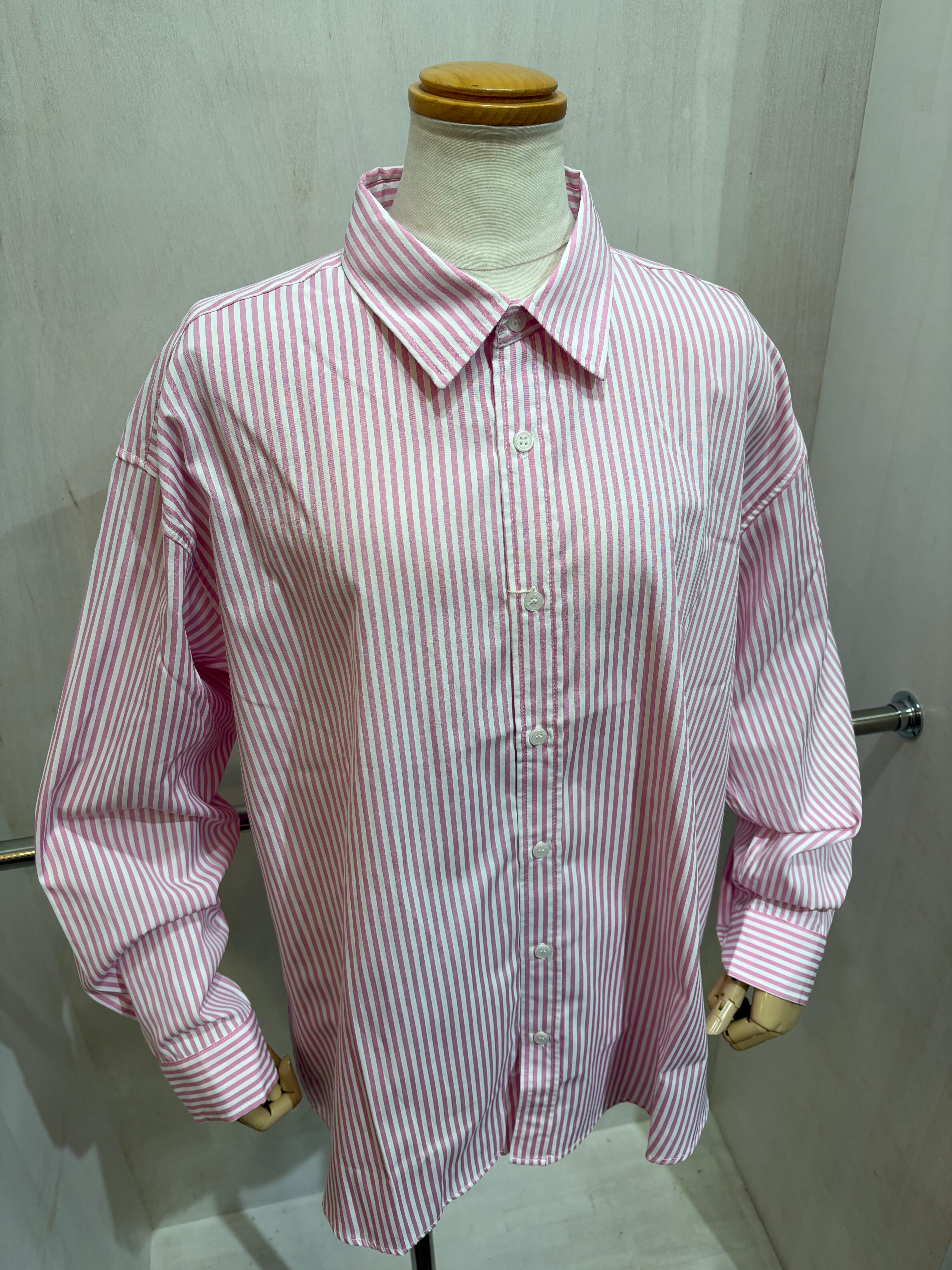 ストライプオーバーシャツ ピンク