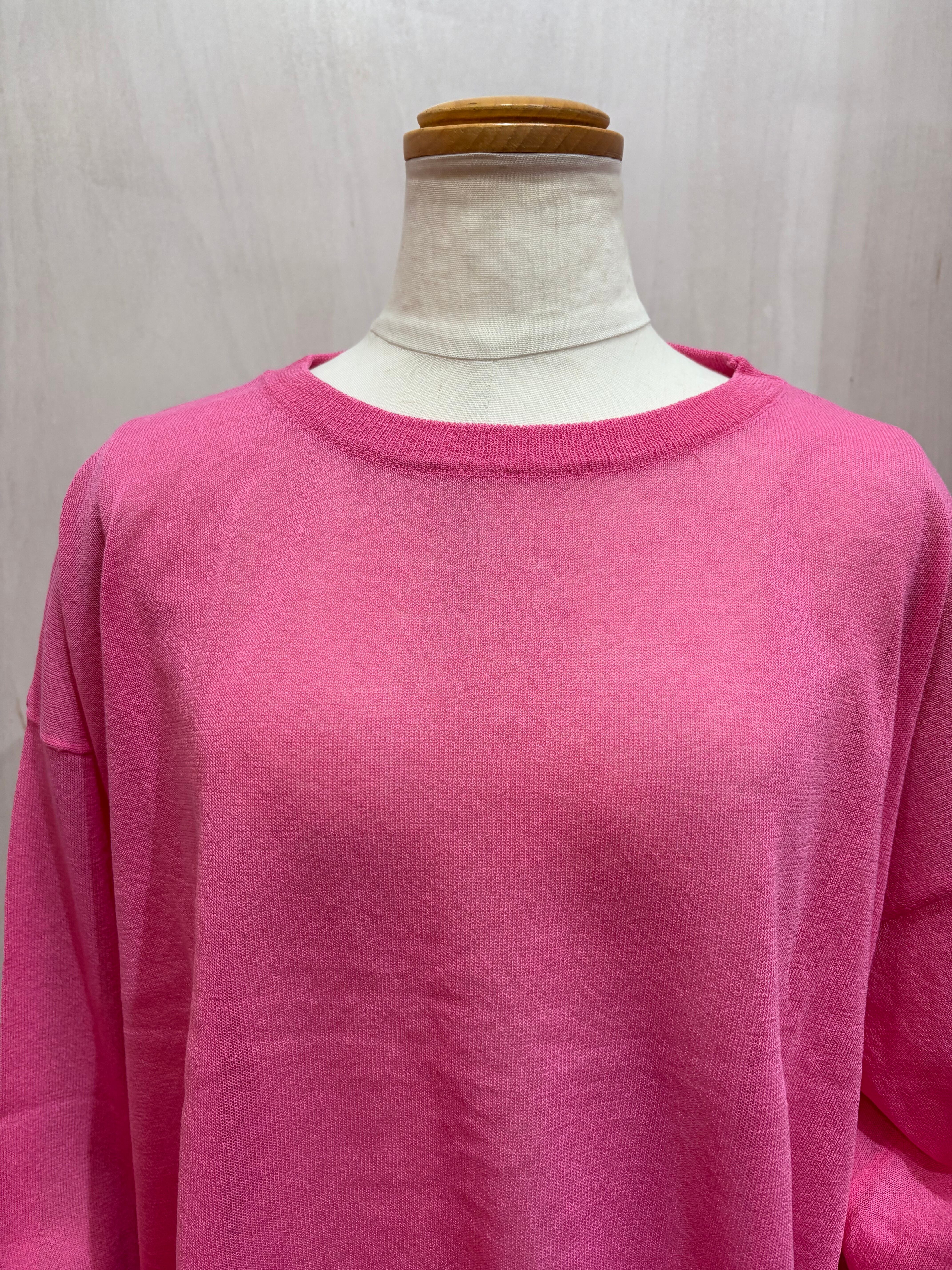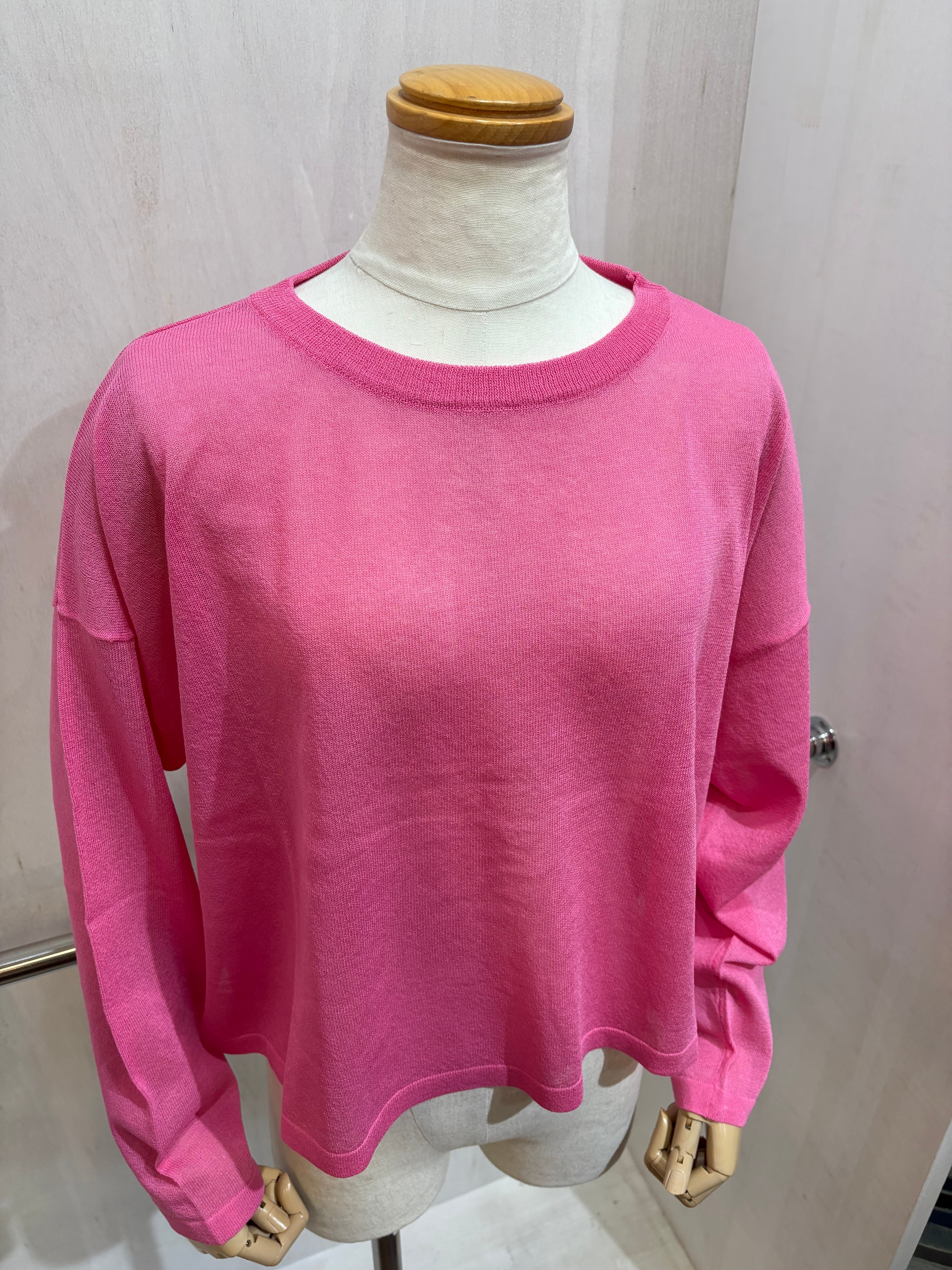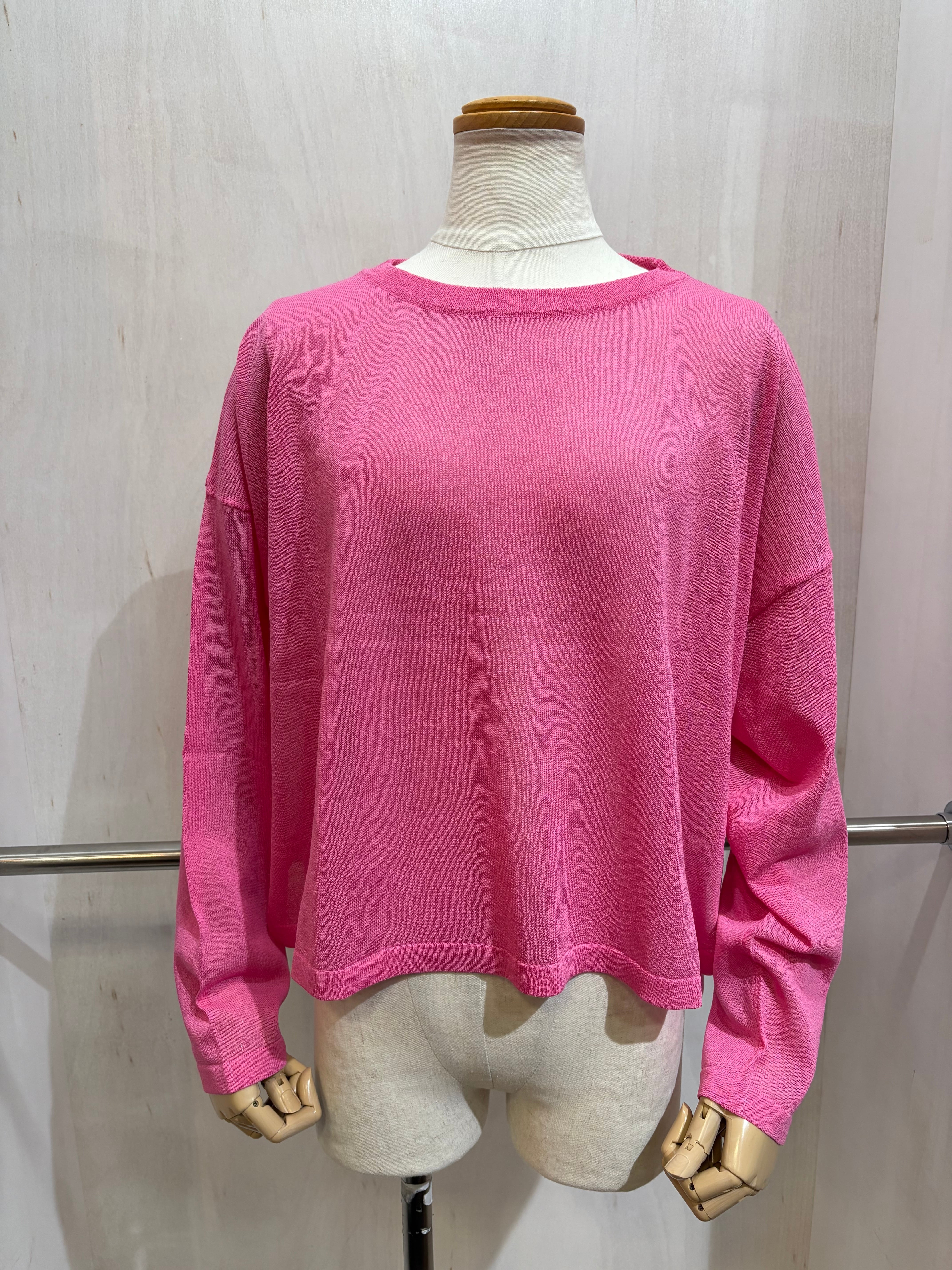 クルーネックニットトップス ピンク