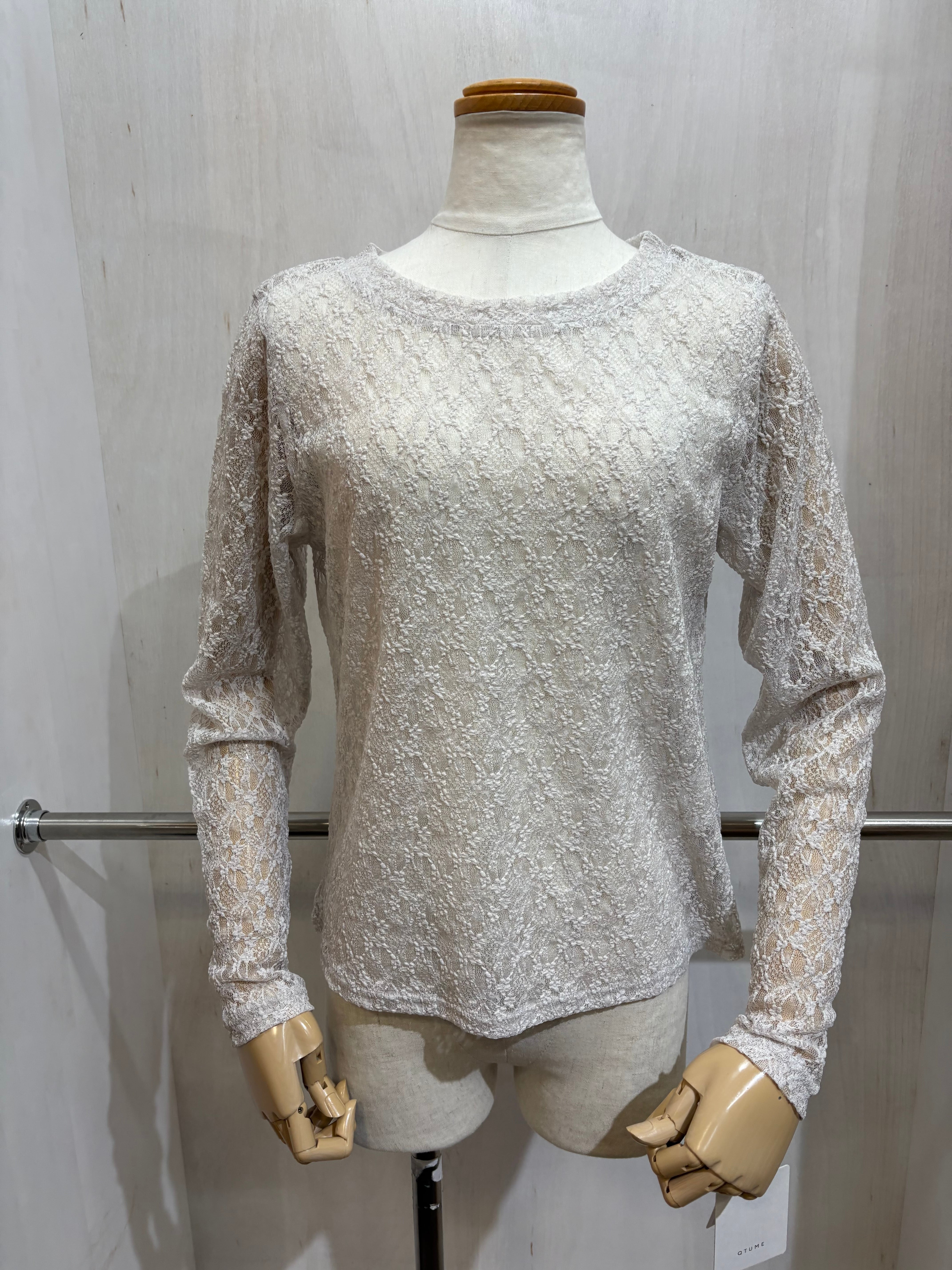 レースカットソー ライトグレー