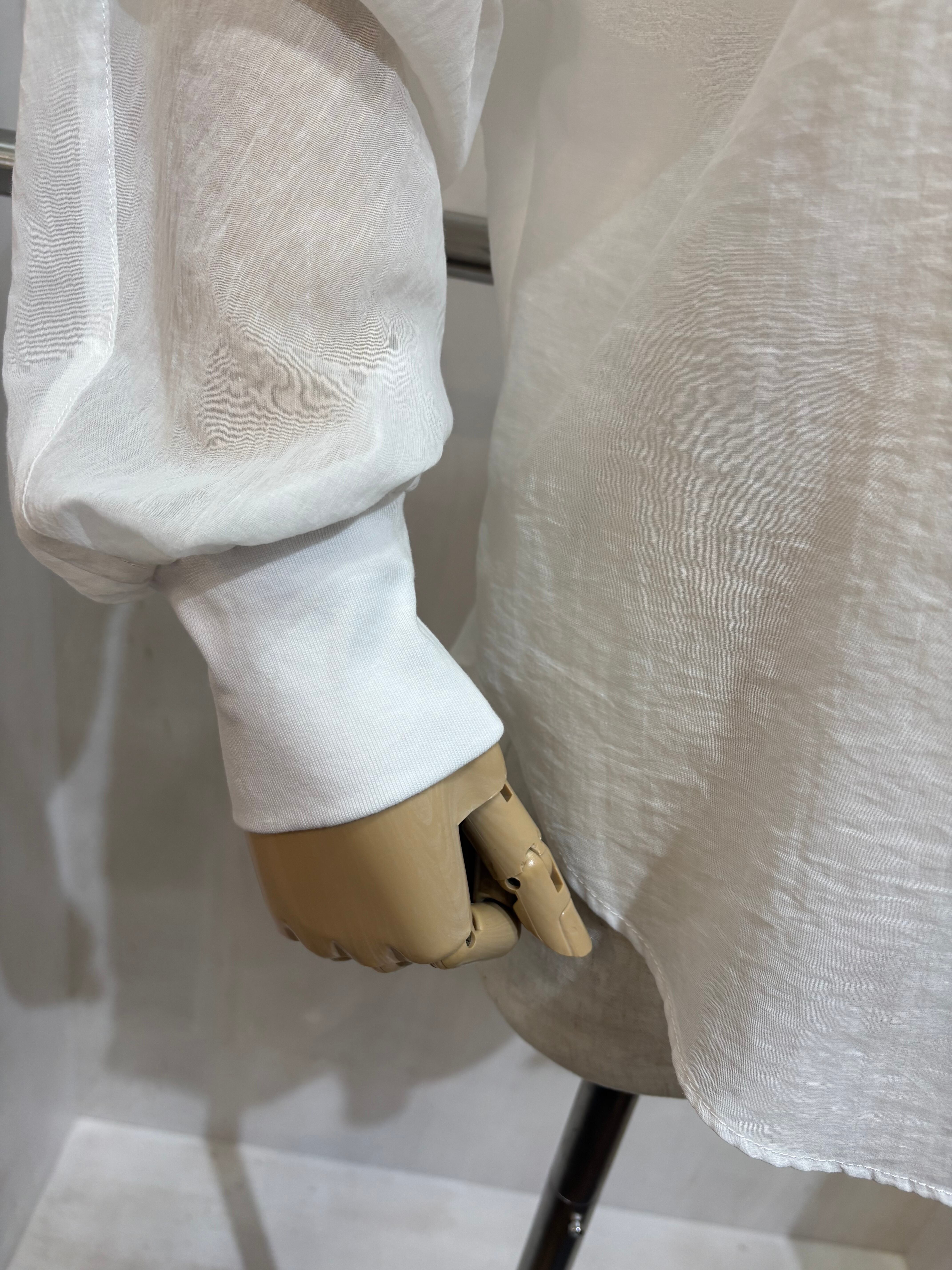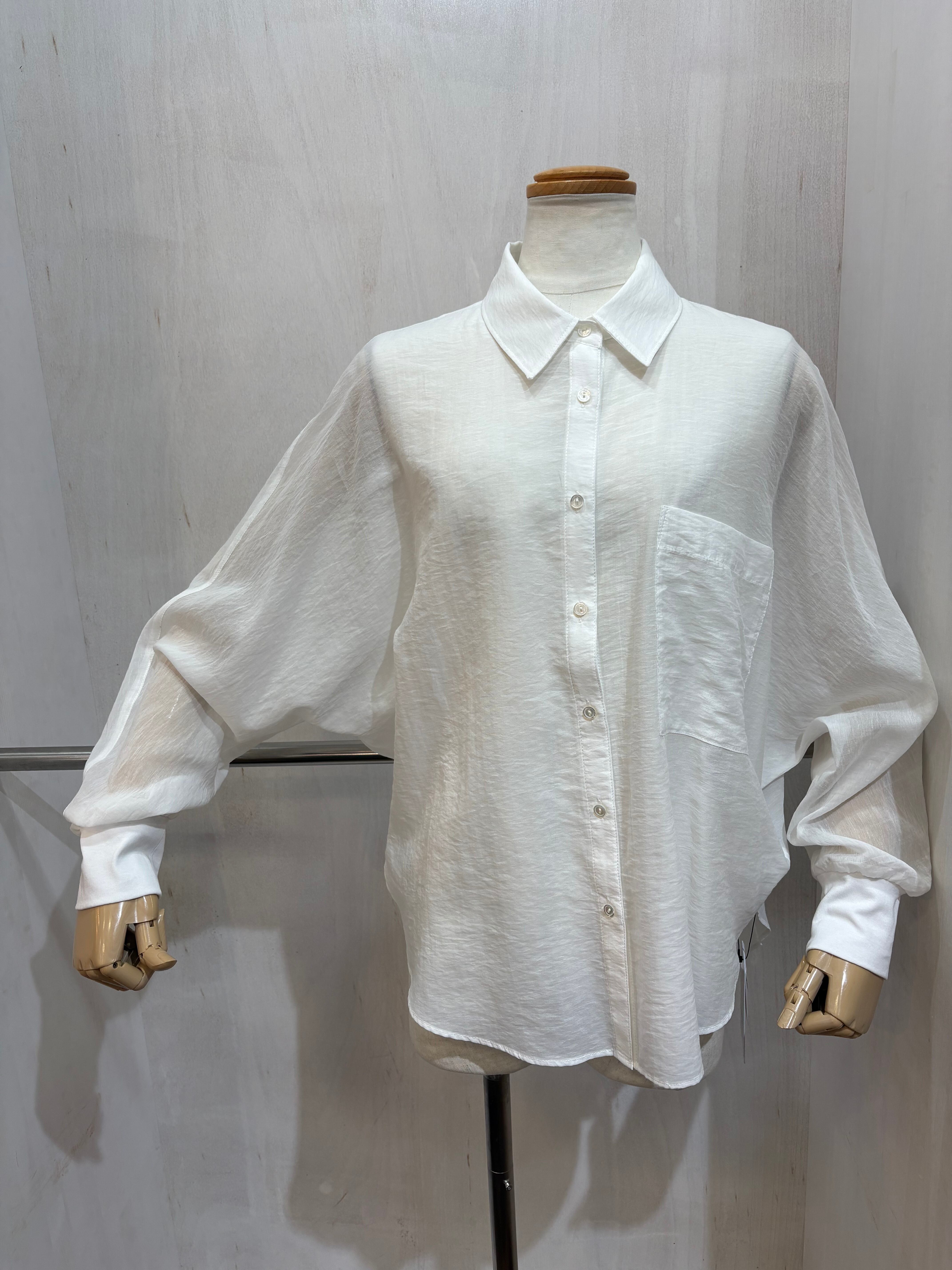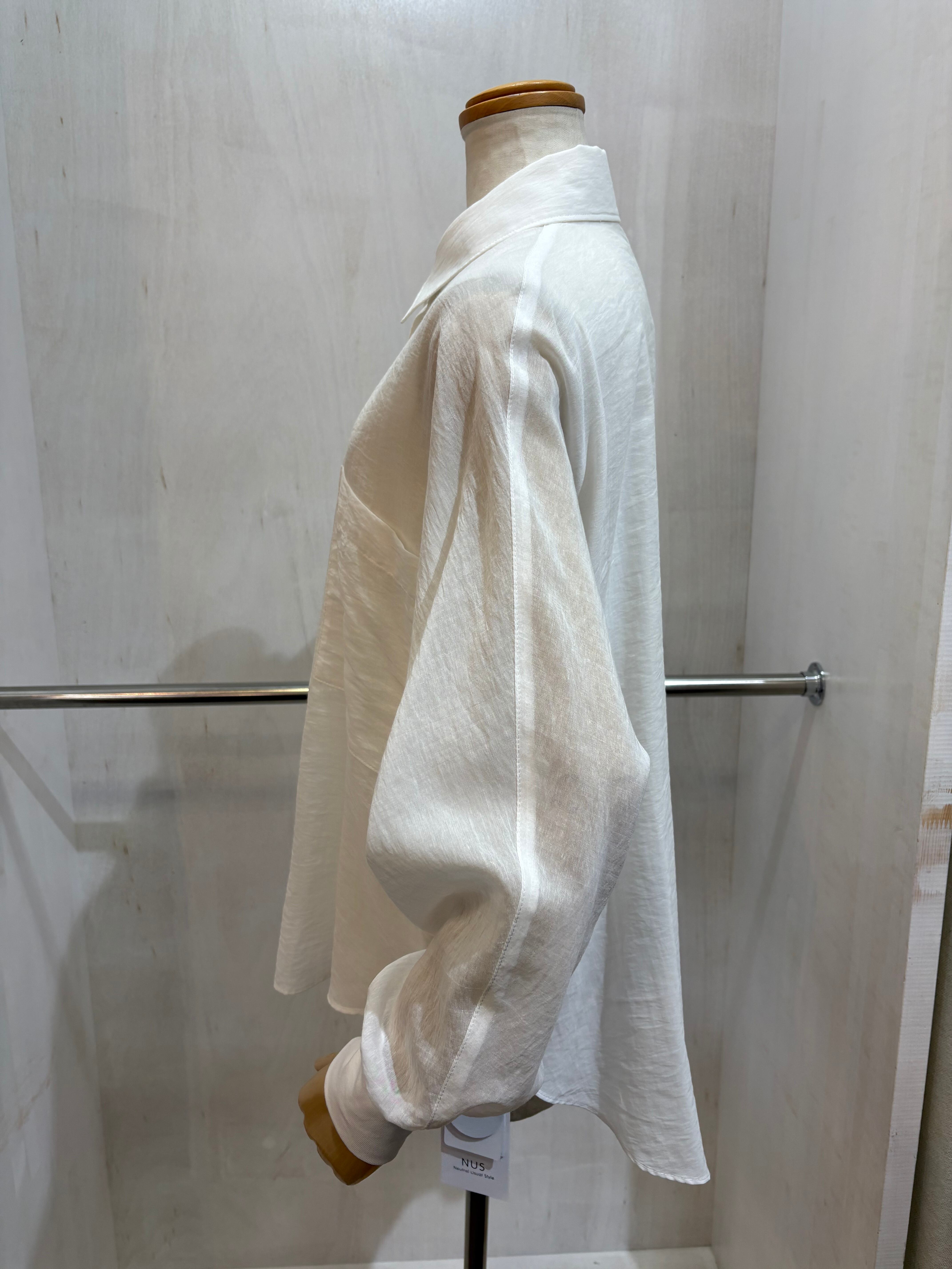 シアー感のある素材を使用したオーバーサイズ感のドルマンシャツ。