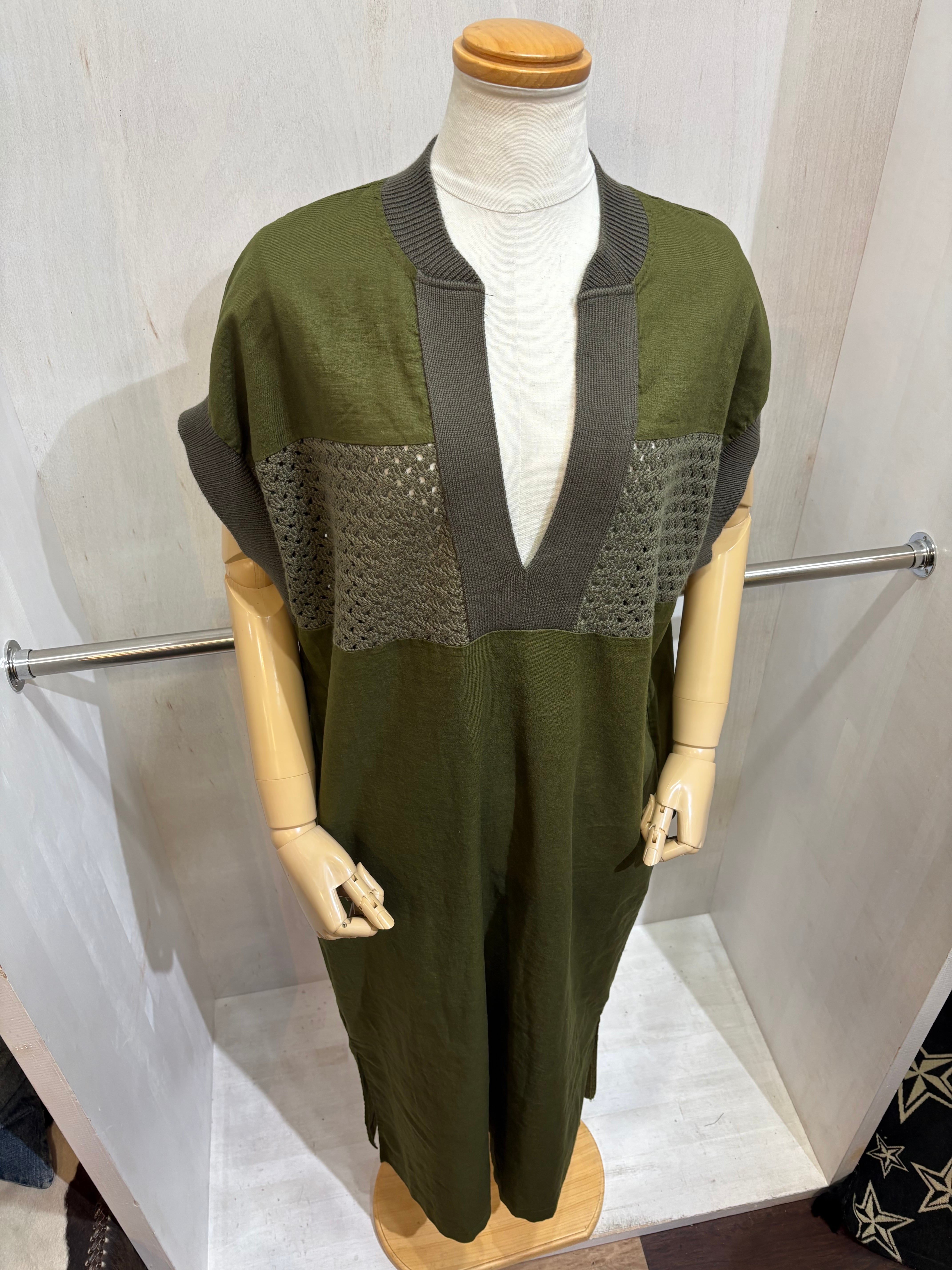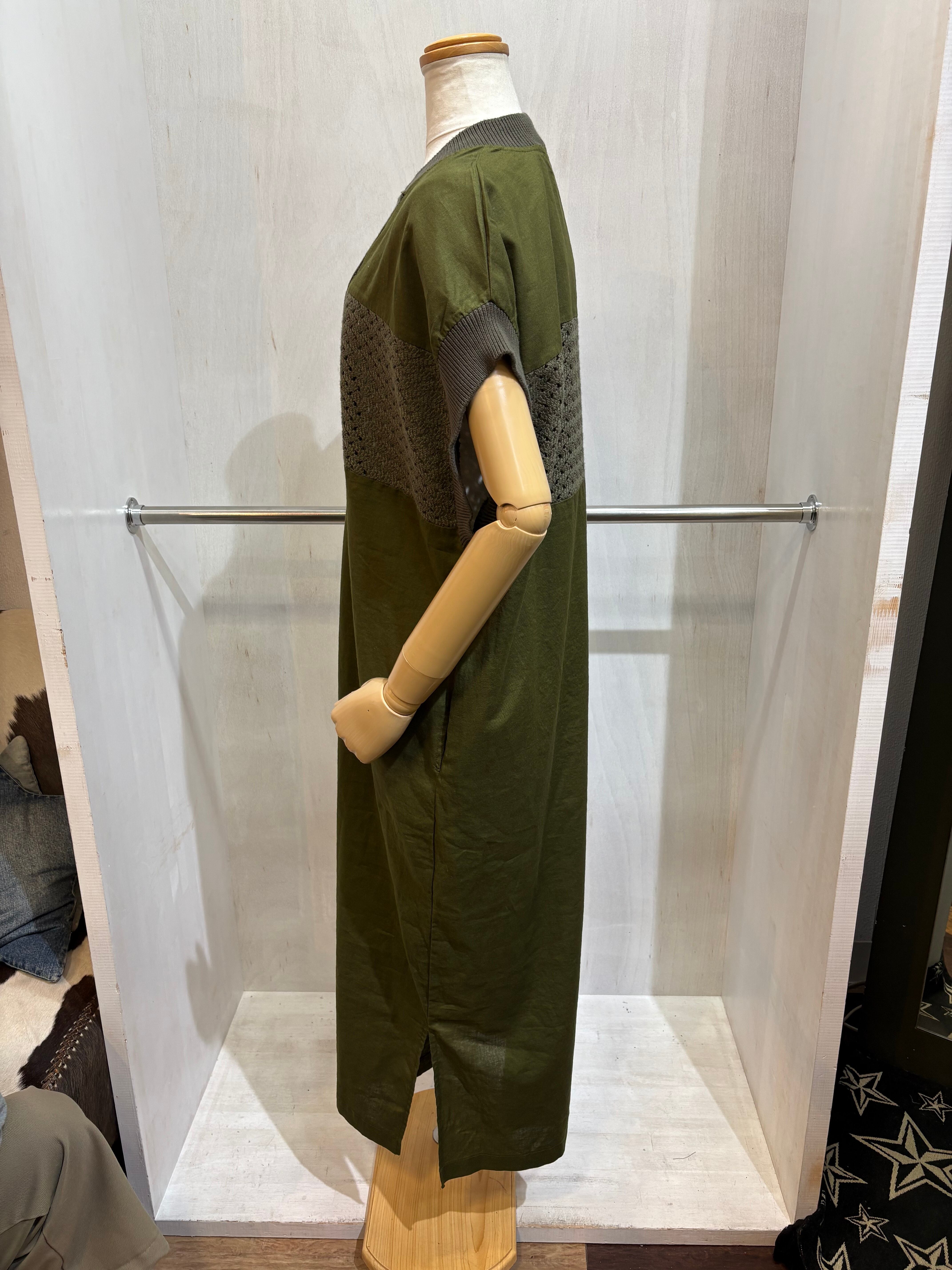 リネン混ワンピース グリーン