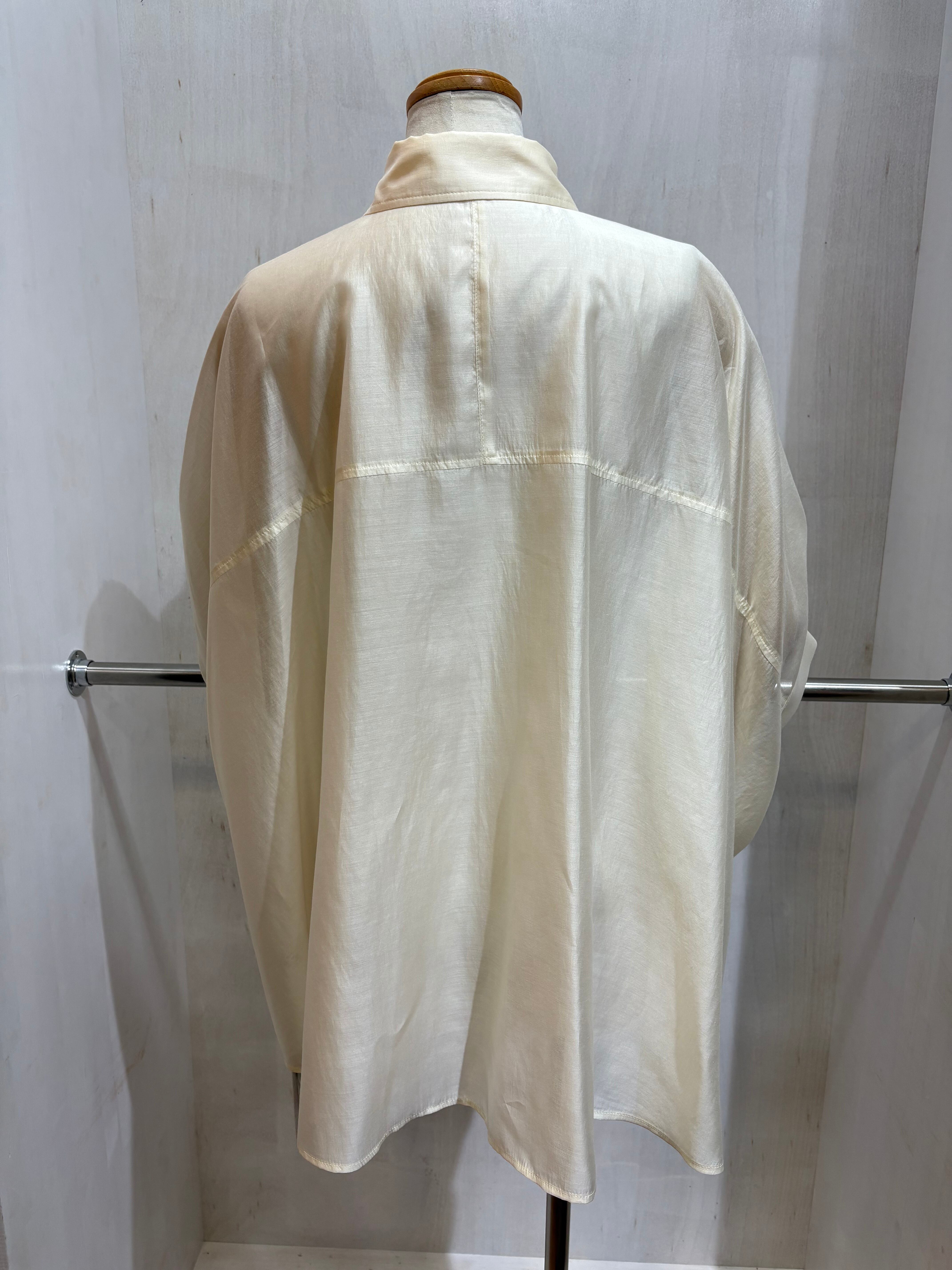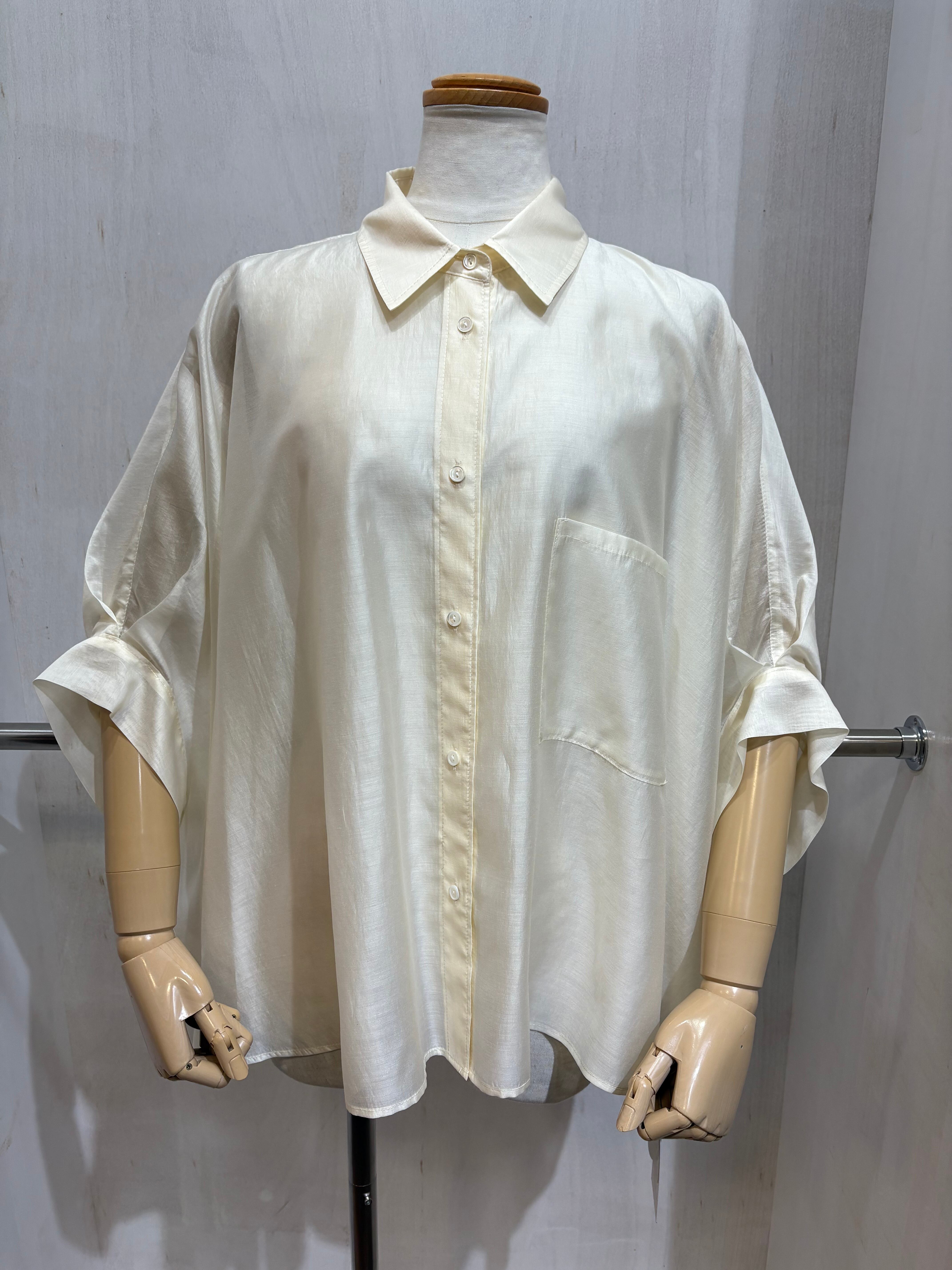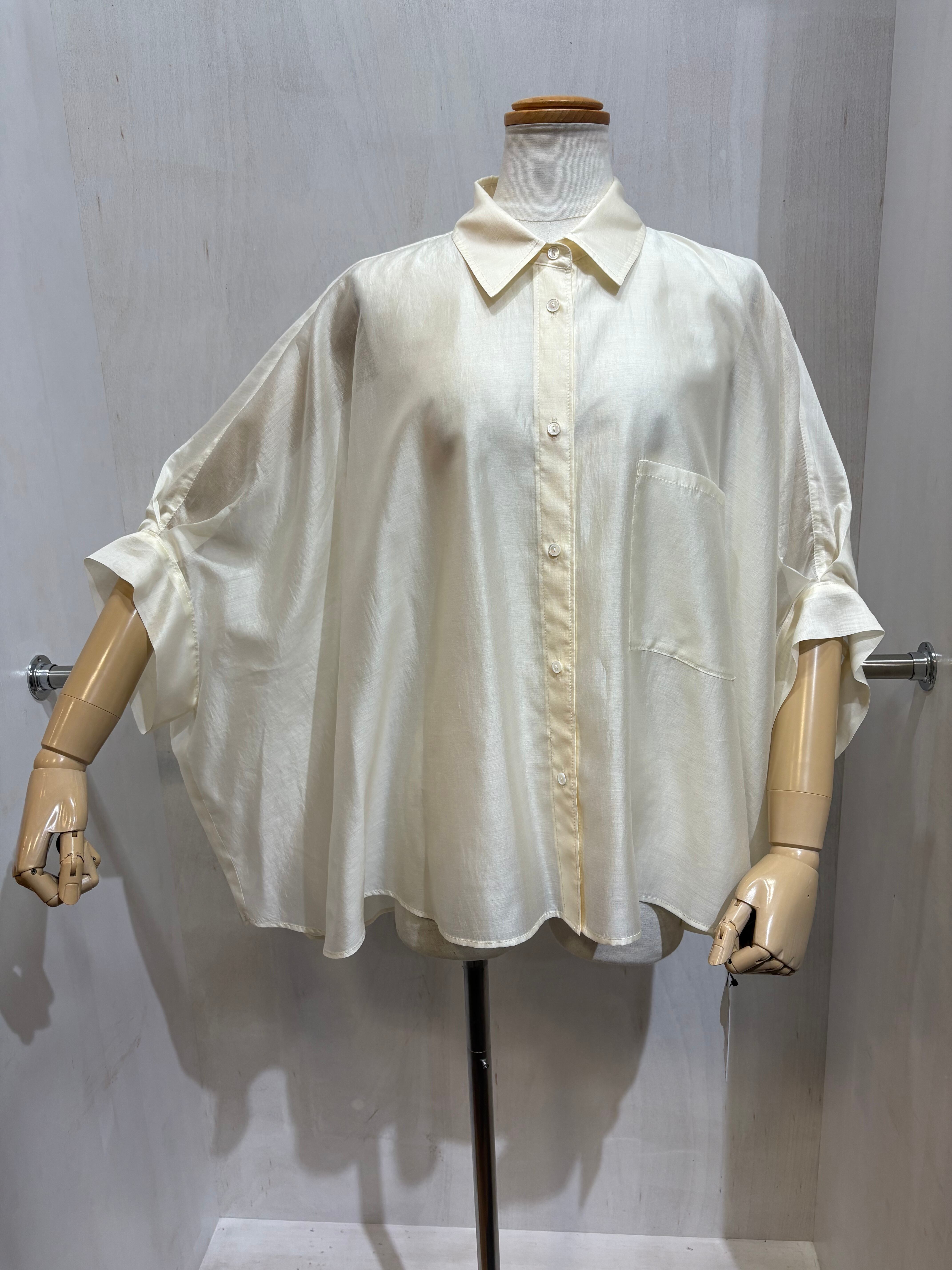 広沢感がありながら若干のシアー感も待ち合わせ生地を使用したドルマンシャツ